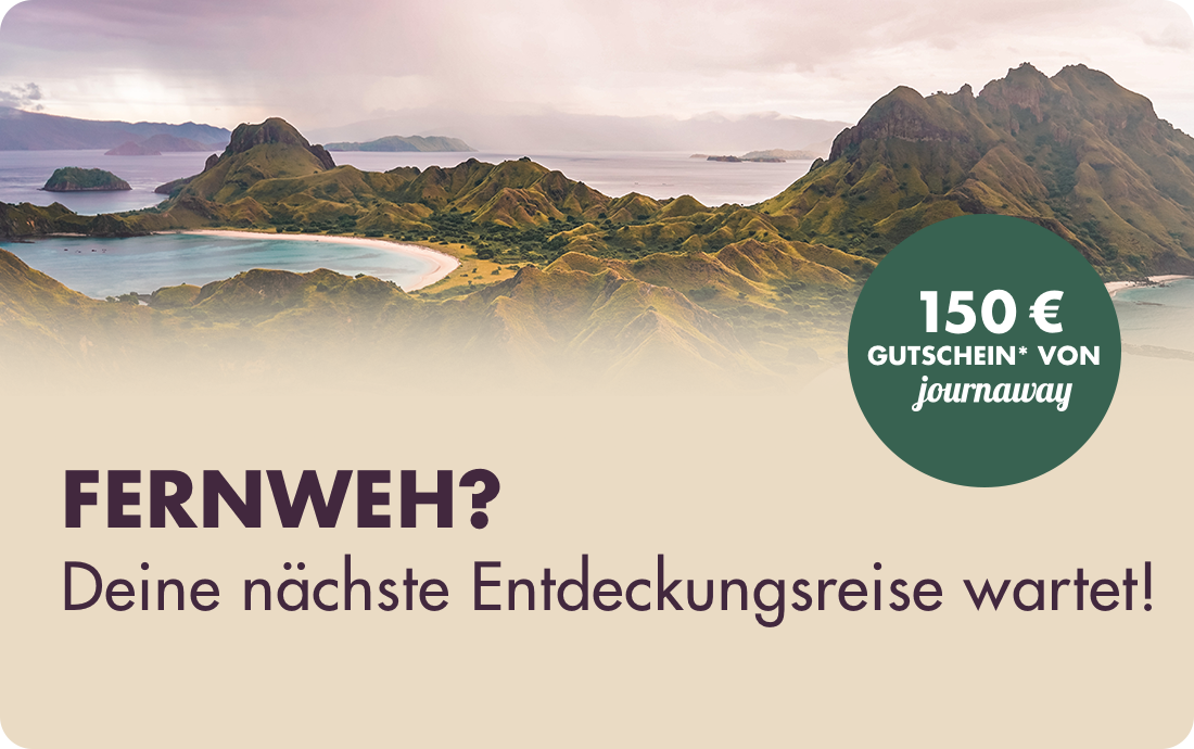 Mit journaway hast du die Wahl aus über 100 verschiedenen Ländern und kannst dir deine Traumreise inklusive Flügen, Unterkünften und Aktivitäten als praktisches Komplettpaket buchen – individuell anpassbar, genau nach deinen Wünschen!