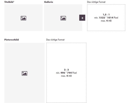 Damit deine Bilder auch in bester Optik glänzen, richte dich bitte nach unseren Mindest- und Maximalgrößen: