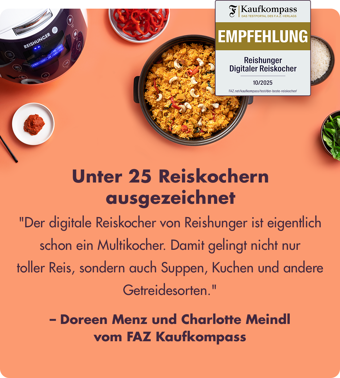 Zubereitungsempfehlung für den Digitalen Reishunger Reiskocher