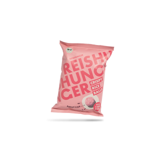 Vorhang auf! Unser Reiskorn hat sich in Schale geschmissen und präsentiert sich im schokoladigen Gewand: unsere Reis Crispy Balls reihen sich in die Familie der Snacks ein. Die Reis Crispies bestehen aus knusprigen Reispops, die von einer Kombination aus zartschmelzender weißer Schokolade und gefriergetrockneten Himbeeren ummantelt ist. Genau das Richtige für alle Chocoholics!