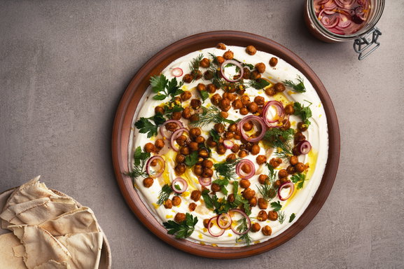 Hummus ist ein cremiges Kichererbsenmus, das sich perfekt zum Dippen von Gemüse und Brot eignen. Die Hauptzutat sind selbst gekochte Kichererbsen oder Kichererbsen aus der Dose. Weitere Zutaten sind Tahin, Zitronensaft- und abrieb, Olivenöl, Salz, Kreuzkümmel und Knoblauch. Alles in den Mixer geben und zu einer cremigen Masse mixen, fertig! Hummus kann vielseitig abgewandelt werden. Toll schmecken Varianten mit Roten Bete, Karotten oder Frühlingszwiebeln. Bei den Gewürzen darf natürlich ebenfalls experimentiert werden.