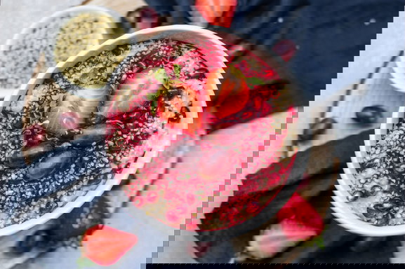 Kein Problem! Du kannst zum Beispiel geschlagene Sahne unter den kalten Milchreis rühren oder mit etwas Milch oder Wasser strecken. Achte aber auf die Konsistenz, damit dein Gericht nicht wässrig wird. Zudem eignet sich auch eher säuerliches Obst, um die Süße auszugleichen.