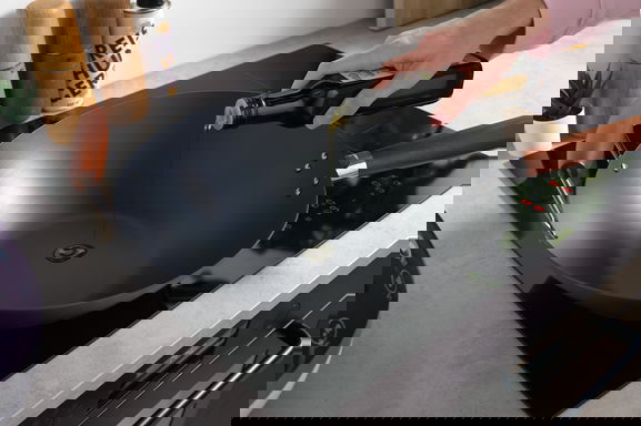 Schritt 3: Verteile nun gleichmäßig einen halben Teelöffel Öl im Wok. Damit du dich nicht verbrennst, kannst du einen Grillpinsel dafür verwenden. Du fragst dich, welches Öl du zum Einbrennen verwenden sollst? Ideal eignen sich hierfür hitzebeständige Öle, wie z.B. das Reishunger Erdnussöl oder Wok Öl.