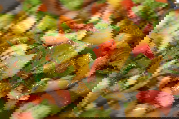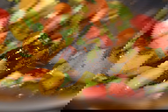 - Wasche und schneide nun das Gemüse, welches in deinem Nasi Goreng nicht fehlen darf. Dafür kannst du Karotten, Frühlingszwiebeln, Paprika und weitere frische Zutaten wie Tomaten oder Gurken verwenden. Wenn du es ein wenig schärfer magst, füge etwas Chili hinzu.