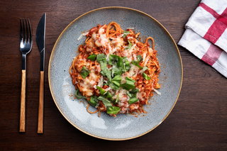 - Die Ragù alla Bolognese mit den Spaghetti alla Chitarra servieren. Bei Bedarf anschließend frisch geriebenen Parmesan oder Pasta Topping darüberstreuen.