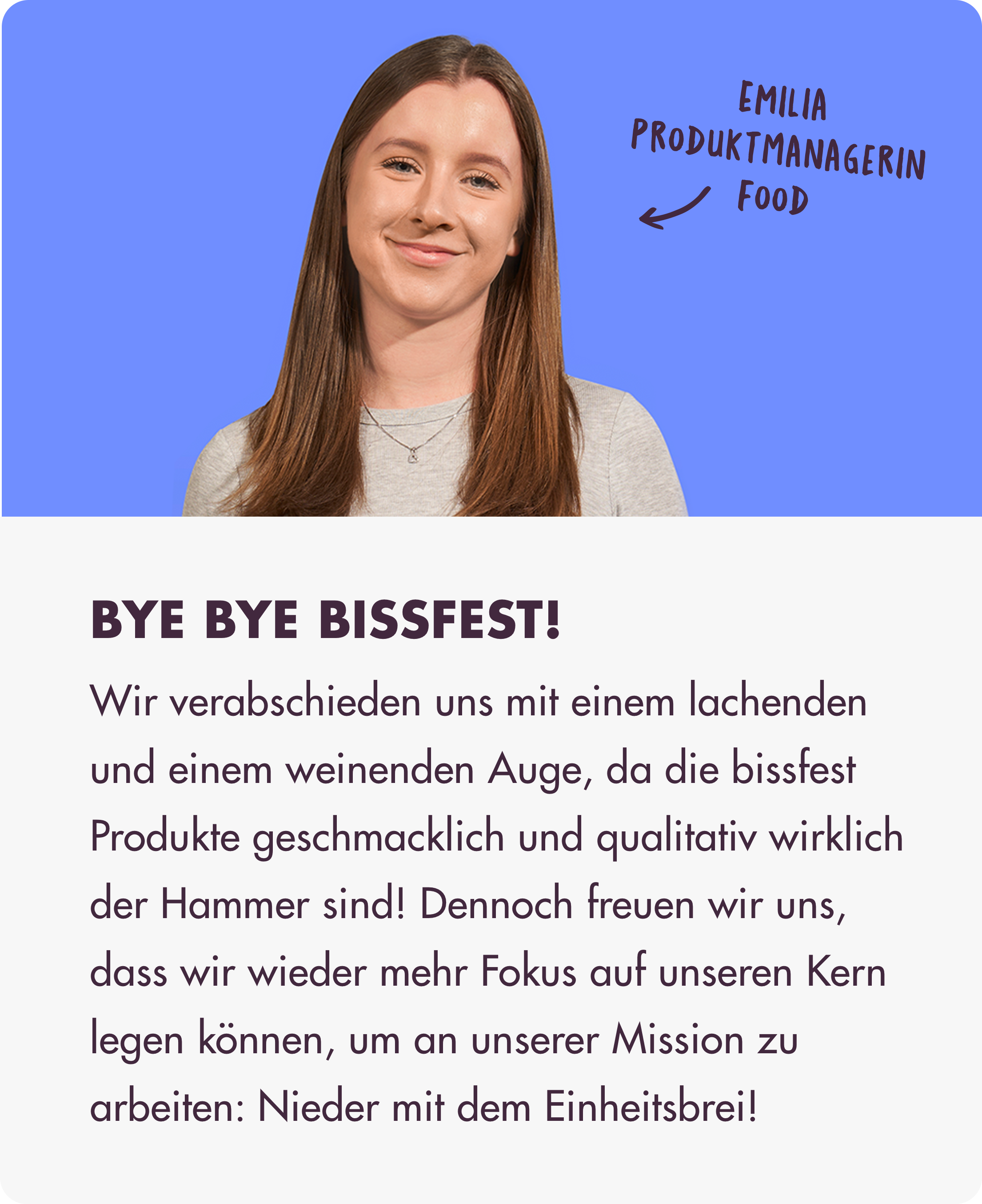 Rette jetzt unsere bissfest Produkte, um einer Entsorgung vorzubeugen und profitiere von starken Rabatten!