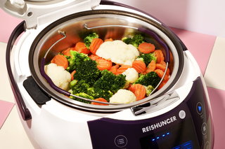 - Edelstahl Dämpfeinsatz: Gemüse, Fisch oder Fleisch gleichzeitig mit dem Reis im Reiskocher dampfgaren? Easy! Und mit dem Edelstahl Dämpfeinsatz dazu noch mit Hilfe eines hochwertigen Küchenhelden – exklusiv für den Digitalen Reiskocher.