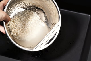 Es ist wichtig deinen Reis vor der Zubereitung zu waschen, weil du damit überschüssige Stärke vom Korn wäschst. Das verhindert das Aneinanderkleben der Reiskörner und führt zu einer fluffigen Konsistenz. Unsere Reis Waschschüsseln eignen sich als Reiskocher Zubehör ideal zum Waschen von Reis – der praktische Siebausguss führt dazu, dass kein Reiskorn mehr im Abfluss landet.