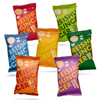 Hauchdünne Reis Chips in verschiedenen Geschmacksrichtungen – klingt gut? Unsere knusprig-würzigen Snacks gibt’s nicht nur Solo zu kaufen – auch im Set machen sie eine super Figur. So kannst du dir direkt alle Sorten bestellen, dich durchprobieren und deine Favoriten finden.