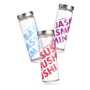 Verwende den Reishunger Reisverschluss, um deine geöffneten Tüten zu schließen. Deine Lebensmittel werden es dir danken und länger frisch bleiben. Bewahre auch deine Vorräte länger frisch, aromatisch und stylisch in unserem Reisglas auf. Und richtig praktisch: Messe anhand der Dosierskala die ideale Menge an Reis ab! Übrigens passt der Inhalt einer 600 g Tüte genau ins Glas.