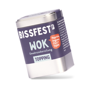 Die Zutaten im Topping sind perfekt auf die Wok Küche abgestimmt. Aromatische und schön fruchtige Noten werden bei unserem Wok Topping zu einer unfassbar bunten Gewürzvielfalt vereint – sowohl optisch als auch geschmacklich. Womit? Mit den Allroundtalenten der asiatischen Küche: von Röstzwiebeln, Salz, Paprika und Schwarzkümmel über Chili, Knoblauch, Lauch und Mangopulver bis hin zu Szechuanpfeffer, Kurkuma, Kressesaat und Basilikum aus biologischem Anbau.