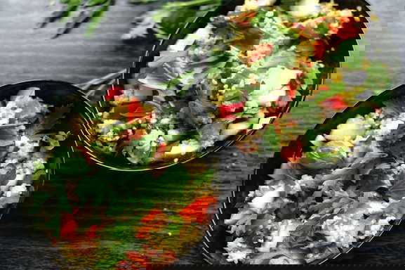 Tipp: Du kannst deinen Salat auch wunderbar in Knusperschälchen aus Yufka- oder Filoteig servieren.