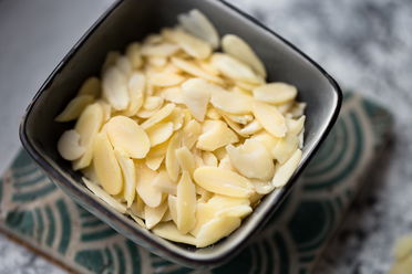 Dann nur noch über den Milchreis geben und die Mandelsplitter darauf streuen. Guten Reishunger!