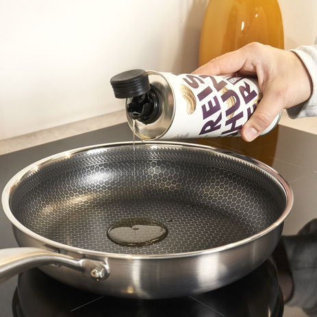 Unbeschichtete Pfannen sind für gewöhnlich sehr robust und langlebig. Sie halten vor allem hohe Temperaturen sehr gut stand – was auch zum größten Unterschied in der Nutzung einer beschichteten und einer unbeschichteten Pfanne führt. Unbeschichtete Bratpfannen eignen sich hervorragend zum scharfen Anbraten auf hoher Hitze. Du kannst sie sowohl für Bratkartoffeln mit gold-brauner Kruste, Tempura Gemüse oder auch zum Anbraten von Fleisch und Fisch verwenden. Auch saucige Speisen wie Risotto eignen sich super für die Zubereitung in unserer unbeschichteten Edelstahl Pfanne. Für empfindliche Zutaten ist eine Pfanne ohne Beschichtung eher weniger geeignet. Wichtig beim Braten bei sehr hohen Temperaturen ist es, ausreichend hitzebeständiges Öl zu verwenden.