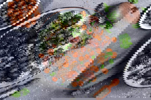 Eerst verwarm je de oven voor op 200 graden en bedek je de bakplaat met bakpapier. Gebruik hiervoor de voorgekookte kikkererwten uit blik of bokaal. Spoel de kikkererwten goed af en verwijder voorzichtig de huid door ze heen en weer te rollen in twee keukendoeken. Besprenkel de kikkererwten met een beetje olie en verdeel ze op de bakplaat, waar ze nu ongeveer 30 tot 40 minuten worden geroosterd tot ze goudbruin zijn.