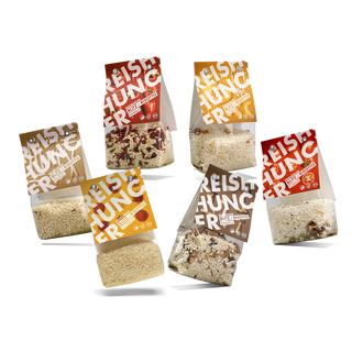 De Flits-Risotto Medium Probeerset bevat 6 biologische risotto's: eekhoorntjesbrood, tomaat, pompoen, asperge, milanese en paprika - bijna als een 6-pack bier, maar dan veel beter!
