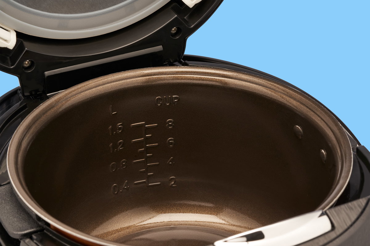 Dankzij het ontwerp zorgt de hoogwaardige binnenpan voor een gelijkmatige warmteverdeling. Keramische coatings zijn onschadelijk voor de gezondheid en de hoogwaardige coating zorgt ervoor dat er geen rijstkorrel aan de bodem blijft plakken. Bovendien heeft de binnenpan praktische handgrepen, zodat je geen ovenwant nodig hebt om de binnenpan na het koken vast te houden.