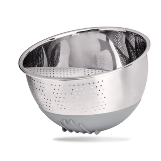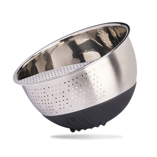 Onze waskom ziet er niet alleen chic uit met zijn tijdloze en eenvoudige design, maar overtuigt ook door zijn functionaliteit & afmetingen. Dankzij zijn kleine, handige formaat kan derijstwaskom perfect worden opgeborgen in bijna elke lade. Zeer stabiel - De siliconen basis zorgt ook voor antislip stabiliteit. Dankzij het materiaal van hoogwaardig en voedselveilig roestvrij staal, profiteer je niet alleen van de hittebestendigheid, maar ook van duurzaamheid. De rijstwaskom voorkomt niet alleen dat je rijstkorrels in de gootsteen belanden, maar kan ook voor vele andere doeleinden worden gebruikt dan alleen voor het wassen van rijst. Duurzaam, chic en praktisch - deze drie woorden beschrijven onze rijstwaskom perfect.