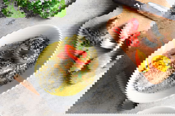 Als je de voorkeur geeft aan iets milders, dan raden wij je een milde gele curry aan met bijvoorbeeld gele paprika, wortels, gember en zoete aardappel - en vergeet natuurlijk de jasmijnrijst niet!