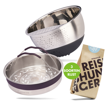 Klaar voor een absolute alleskunner voor in de keuken? Onze trots: de digitale rijstkoker. Vergeleken met de Mini Digi kun je nog meer programma's selecteren via het digitale display - 12 in totaal. Je kunt er zowel rijst als quinoa of granen mee koken. Het stomen van groenten, vis en vlees, het bereiden van rijstgerechten zoals Perzische tahdig, soepen en zelfs gebak is geen probleem met de Digi. Onze premium rijstkoker heeft7 verschillende warmtestanden waarmee de rijst gelijkmatig en zachtjes gaar wordt. Met onze digitale rijstkoker kun je tegelijkertijd je favoriete groenten stomen en de heerlijkste gerechten bereiden voor maximaal 8 personen met behulp van de verschillende standen en een vulvolume van 1,8 liter . Hij schakelt ook automatisch over naar de warmhoudstand na het koken en houdt je rijst tot 24 uur vers.